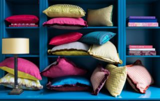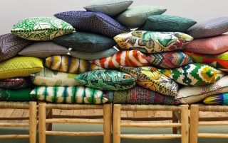 Handmade cushions from the exclusive house of Gezusters Stoop from Amsterdam. Many are hand embroidered and have surpising patterns and