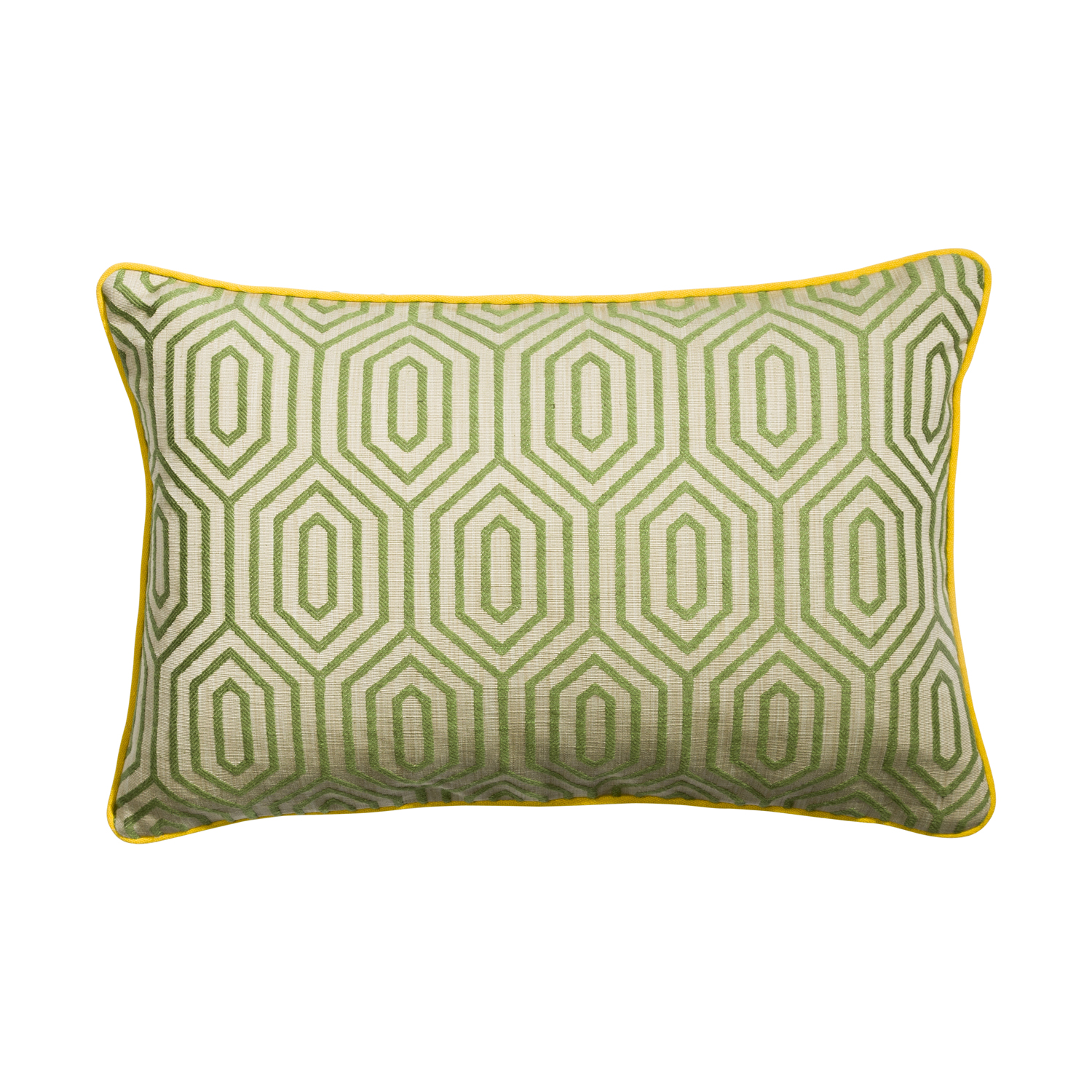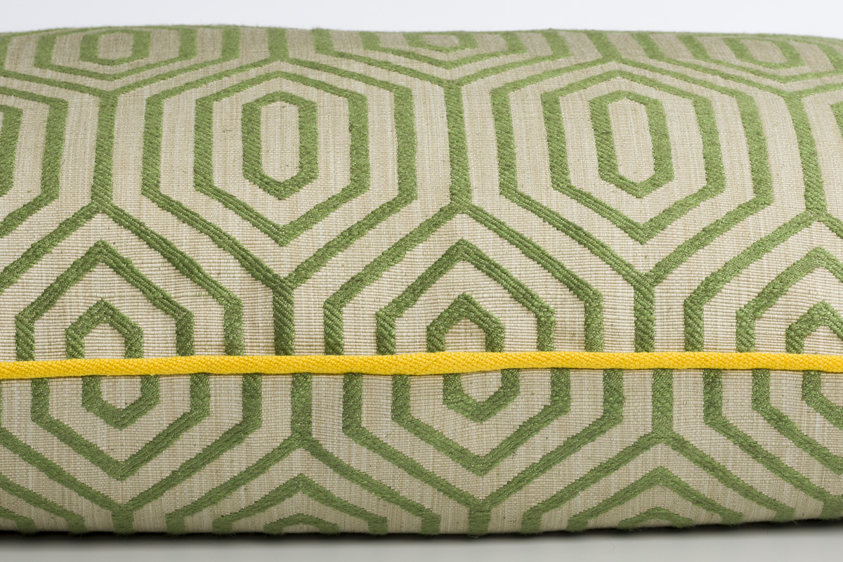 Cushions are a simple and stylish way to revive the look and feel of a room, this elegant green geometric design is a chique and fresh contribution to your home.