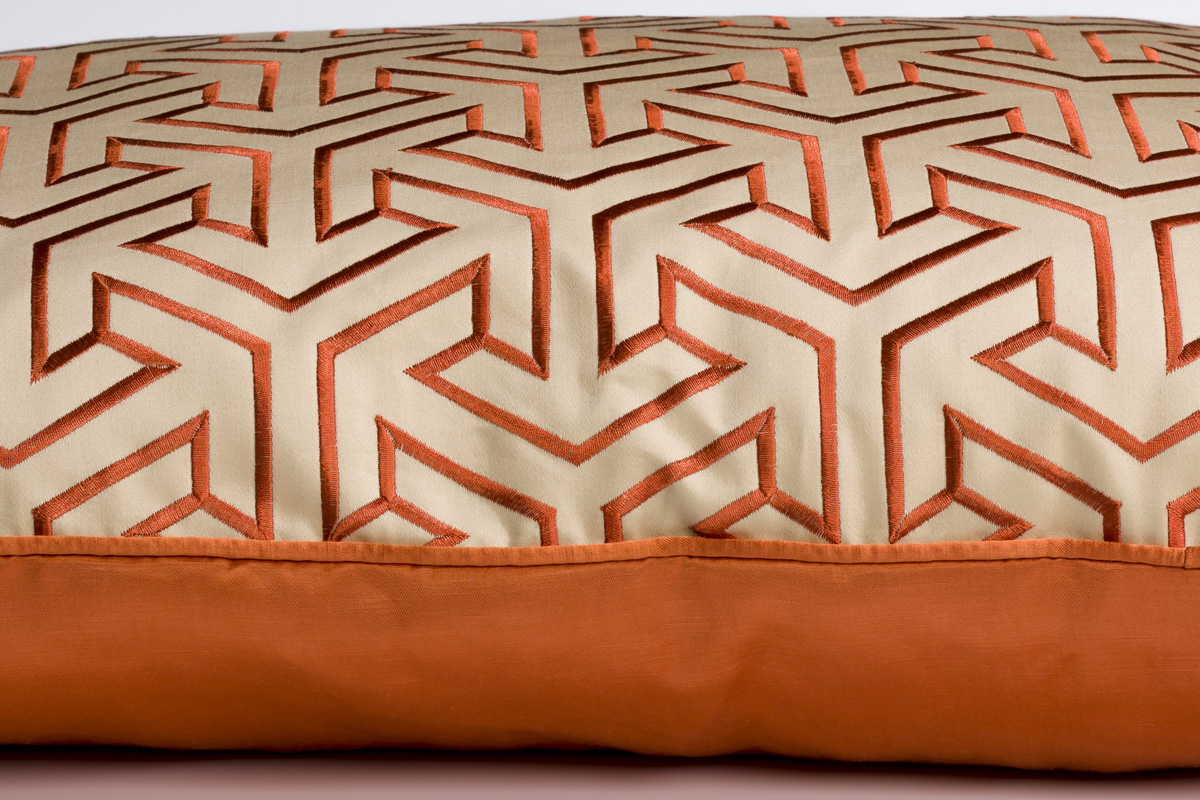 This silk cushion will bring understated glamour to your home. Mix and match with plain fabrics and it will brighten up any room. The reverse side being bright orange makes it fun to mix and match.